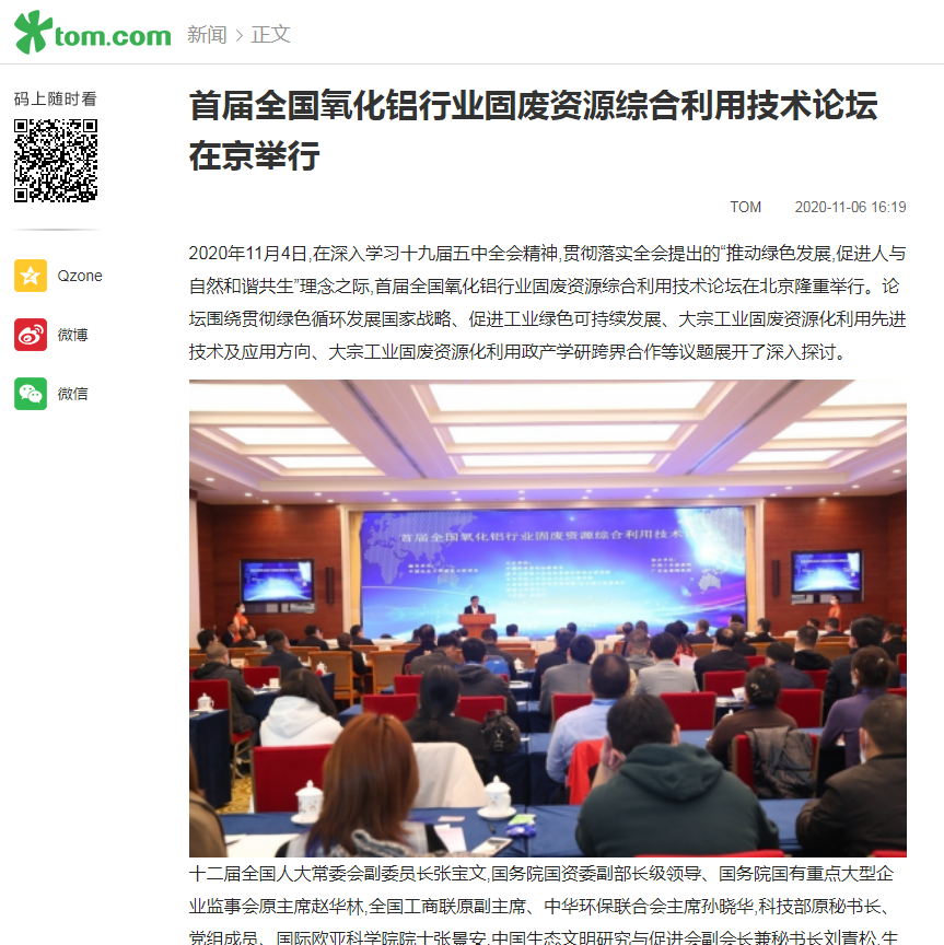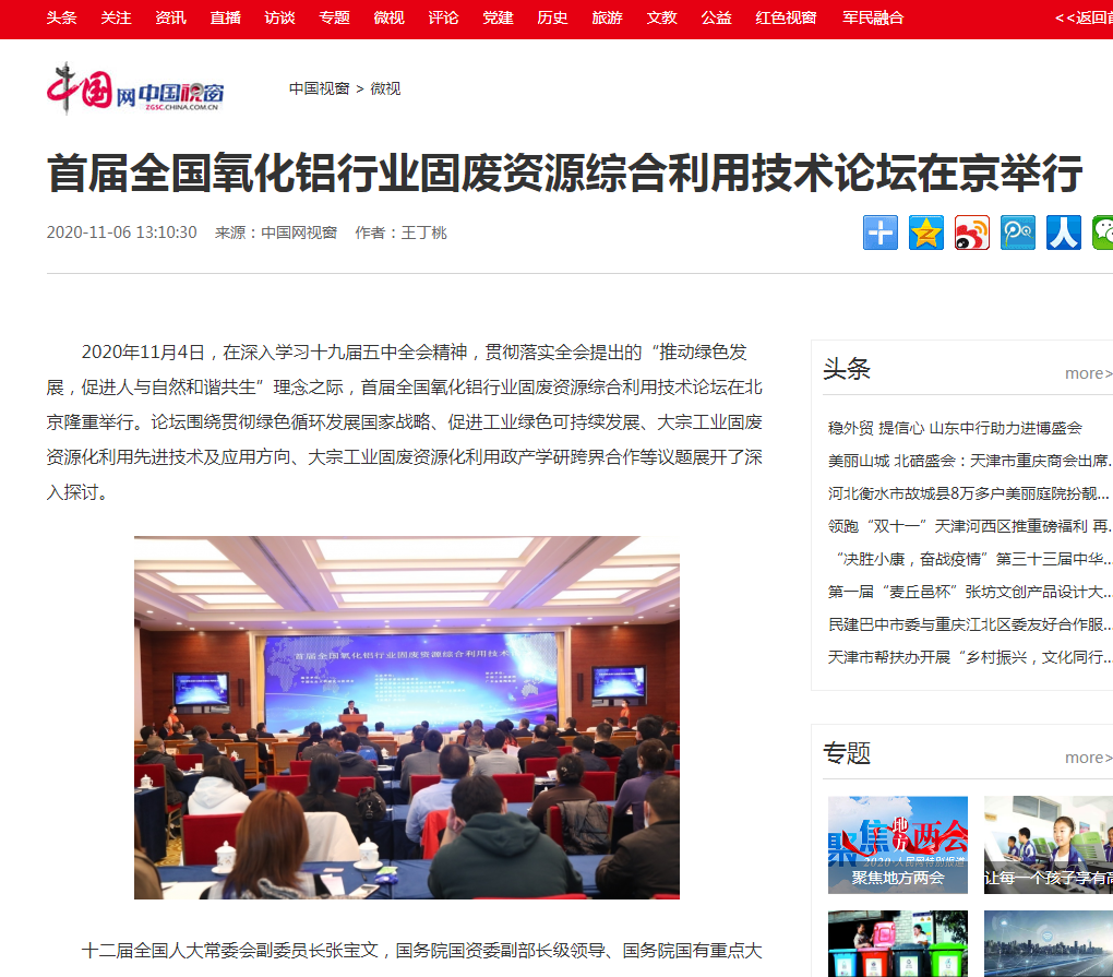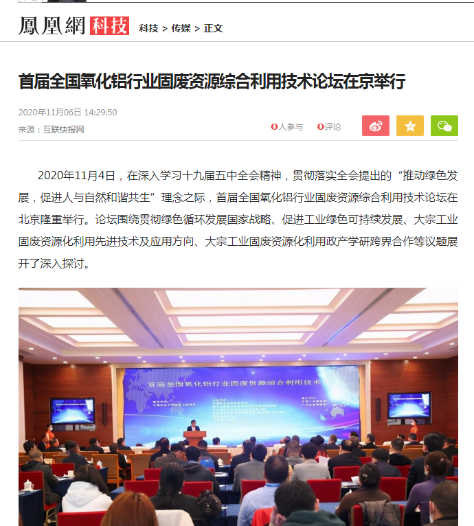 中國經(jīng)濟(jì)網(wǎng)、中國網(wǎng)、鳳凰科技、中華網(wǎng)、中國環(huán)境報、國際節(jié)能環(huán)保網(wǎng)、TOM新聞等及數(shù)十家主流媒體刊載《首屆全國氧化鋁行業(yè)固廢資源綜合利用技術(shù)論壇在京舉行》